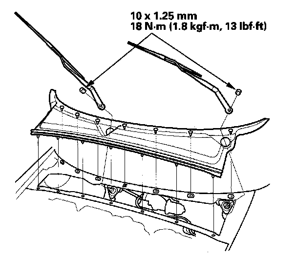 Wiper Motor Replacement1. Open the hood, and remove the cap nuts and the wiper arms.