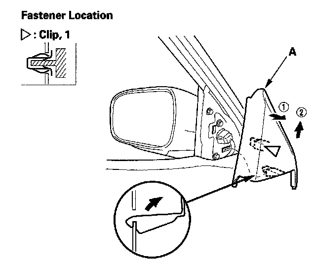 2. Carefully pry out the mirror mount cover (A) by hand in the sequence shown.