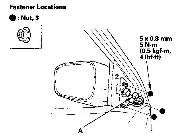 4. While holding the mirror, remove the nuts securing the mirror, and remove the mirror (manual mirror models).