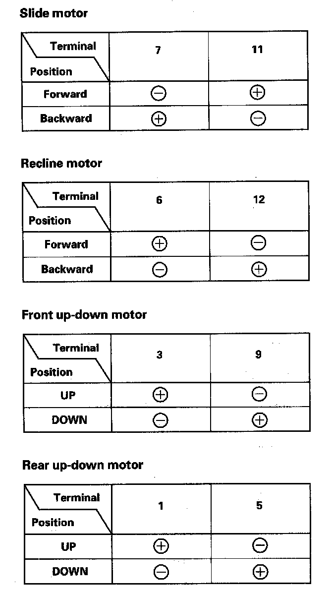 4. If the motor does not run or fails to run smoothly, check for an open in the driver's seat wire harness between the 12P connector and each motor connector. If the harness is OK, replace the motor.
