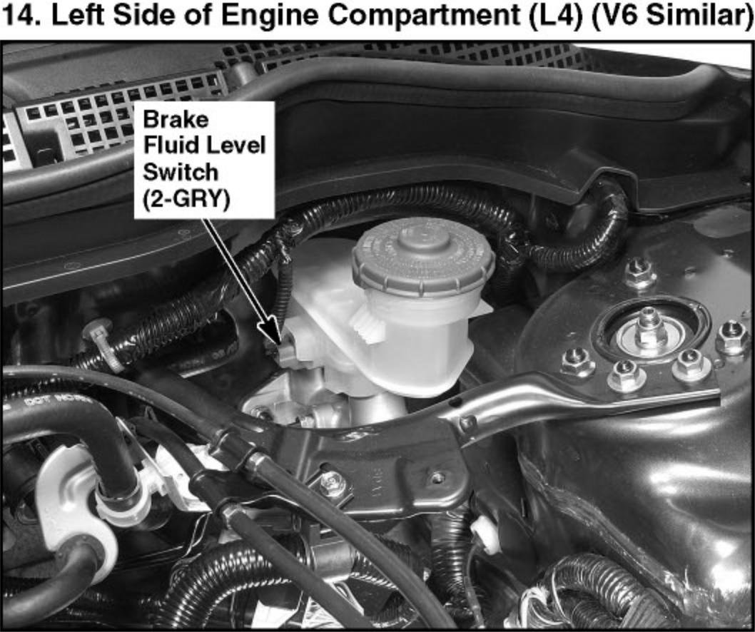 14. Left Side of Engine Compartment (L4) (V6 Similar):