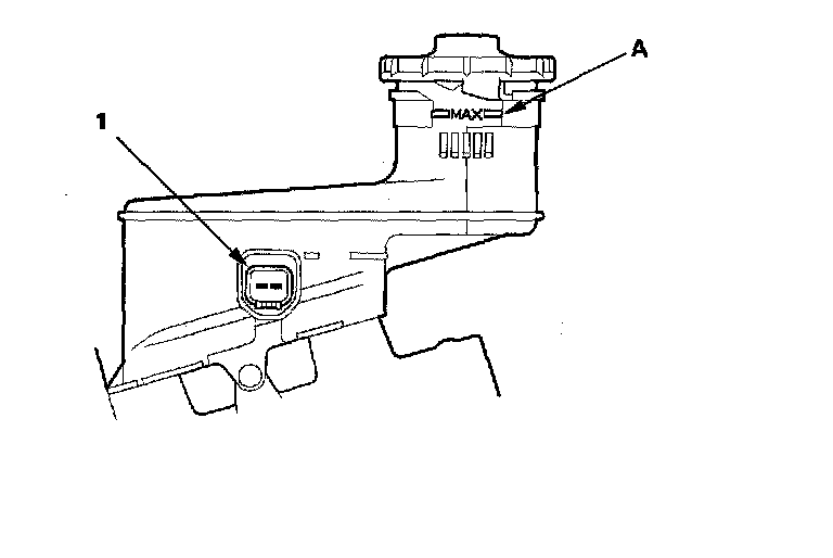 ^ Fill the reservoir with brake fluid to the MAX (upper) level (A). With the float up, there should be no continuity.