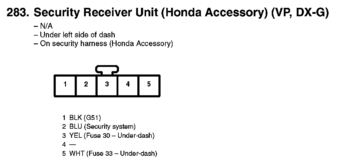 283. Security Receiver Unit (Honda Accessory) (VP, DX-G):