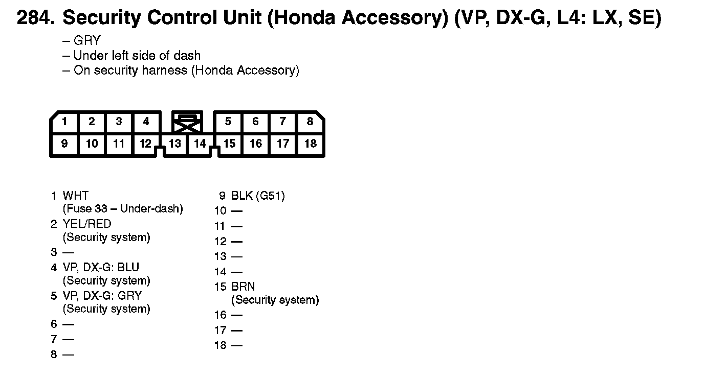 284. Security Control Unit (Honda Accessory) (VP, DX-G, L4: LX, SE):