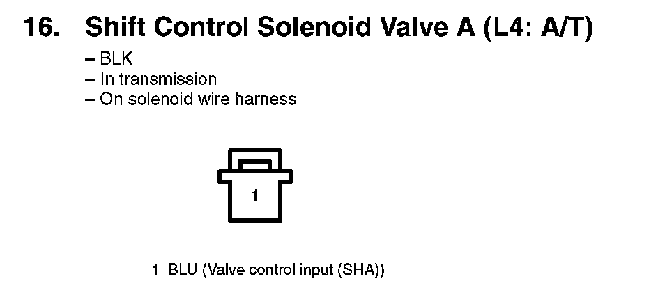 16. Shift Control Solenoid Valve A (L4: A/T):