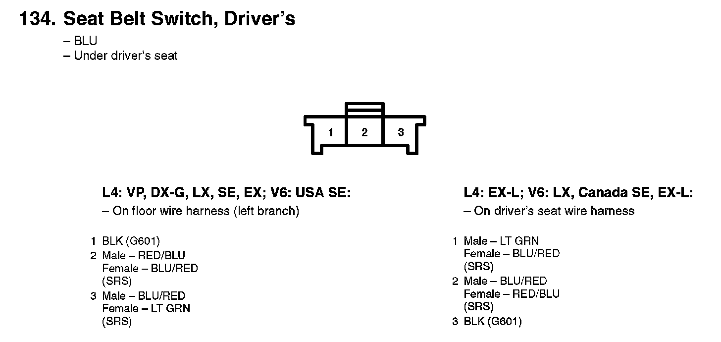 134. Seat Belt Switch, Driver's: