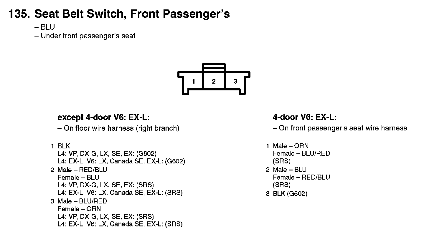 135. Seat Belt Switch, Front Passenger's: