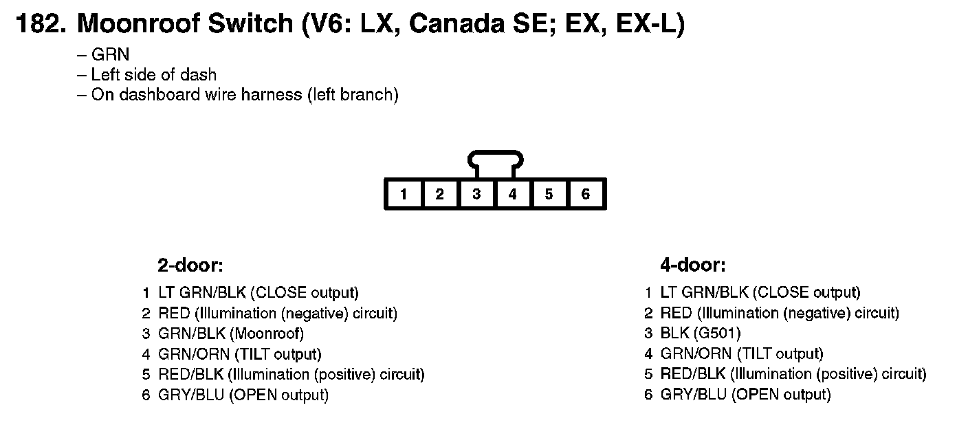 182. Moonroof Switch (V6: LX, Canada SE; EX, EX-L):