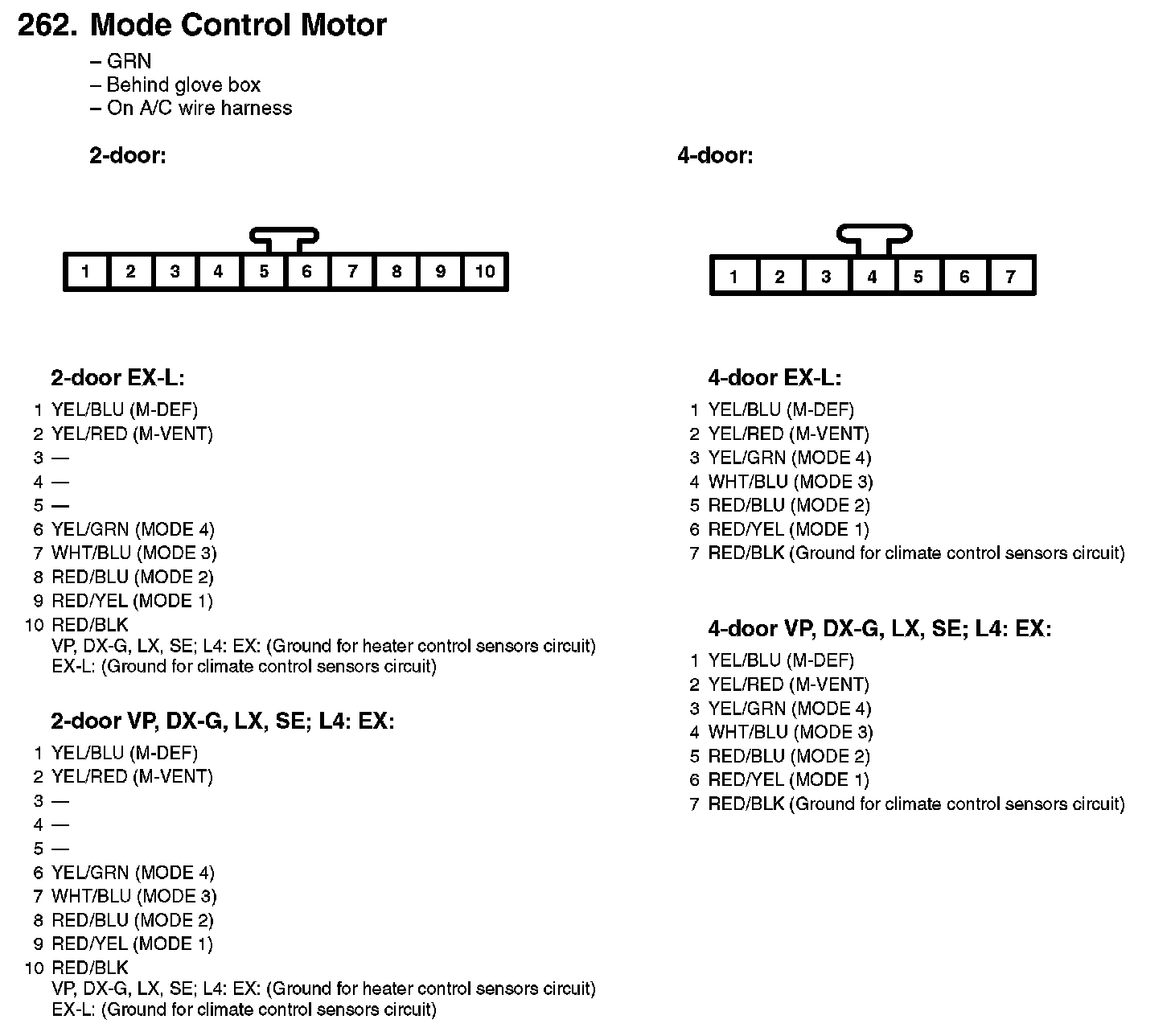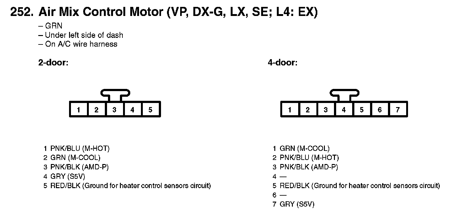 252. Air Mix Control Motor (VP, DX-G, LX, SE; L4: EX):