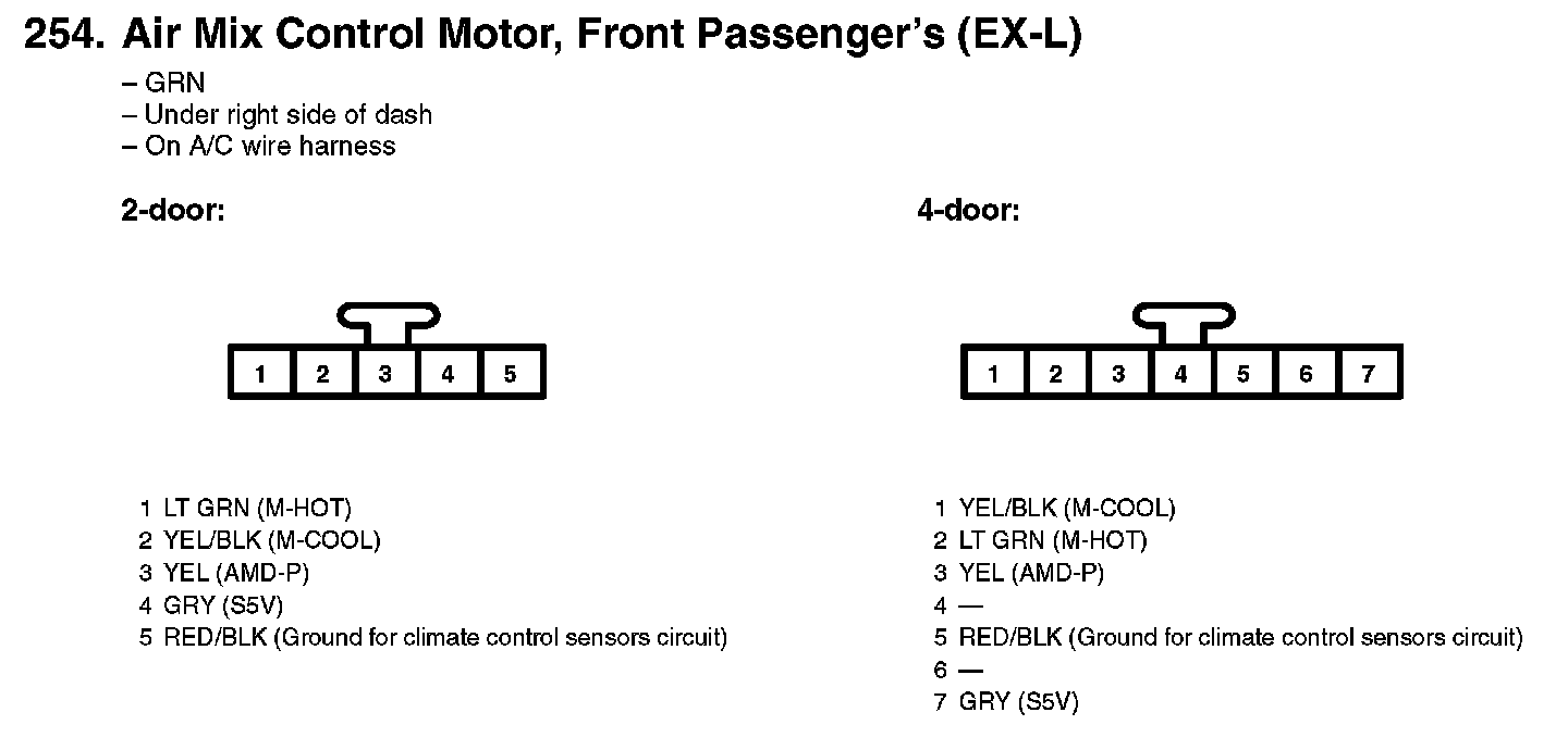 254. Air Mix Control Motor, Front Passenger's (EX-L):