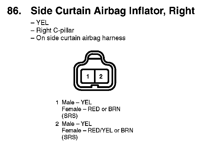 86. Side Curtain Airbag Inflator, Right: