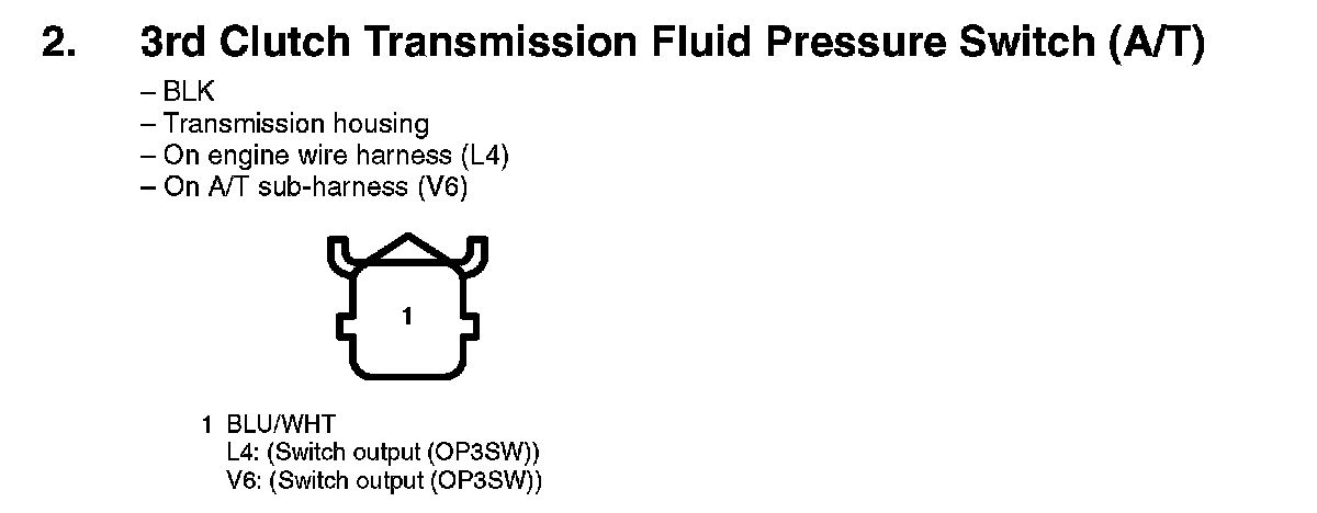 2. 3rd Clutch Transmission Fluid Pressure Switch (A/T):