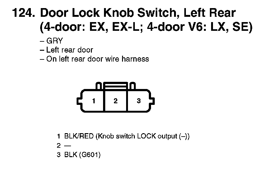 124. Door Lock Knob Switch, Left Rear (4-door: EX, EX-L; 4-door V6: LX, SE):