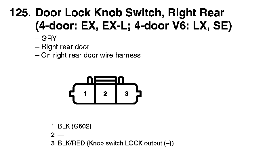 125. Door Lock Knob Switch, Right Rear (4-door: EX, EX-L; 4-door V6: LX, SE):