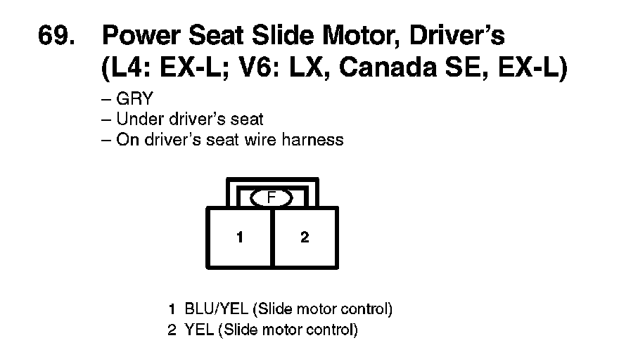 69. Power Seat Slide Motor, Driver's (L4: EX-L; V6: LX, Canada SE, EX-L):
