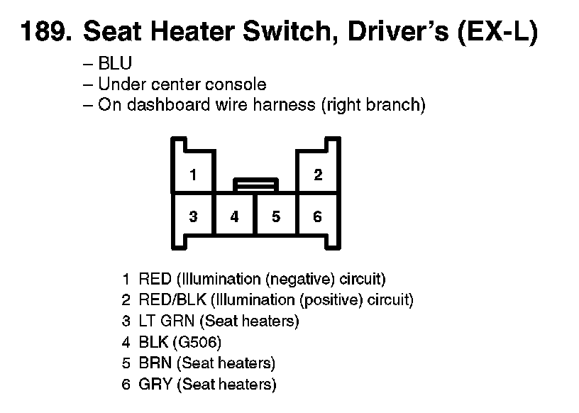 189. Seat Heater Switch, Driver's (EX-L):