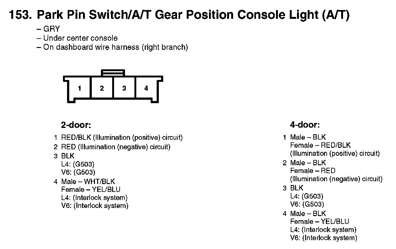 153. Park Pin Switch/A/T Gear Position Console Light (A/T):