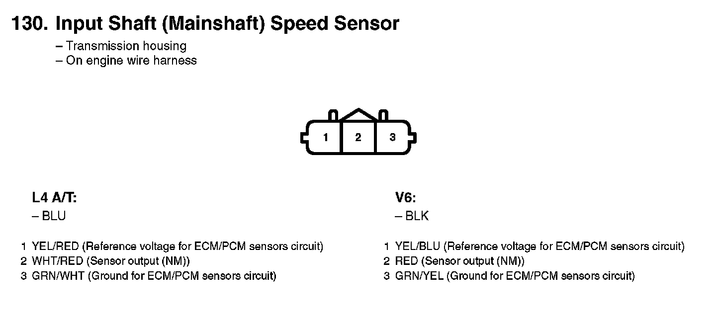 130. Input Shaft (Mainshaft) Speed Sensor: