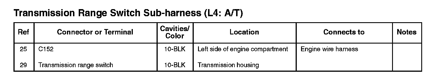 Transmission Range Switch Sub-harness (L4: A/T):
