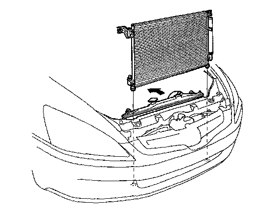 - Be careful not to damage the radiator or the A/C condenser fins when installing the A/C condenser.