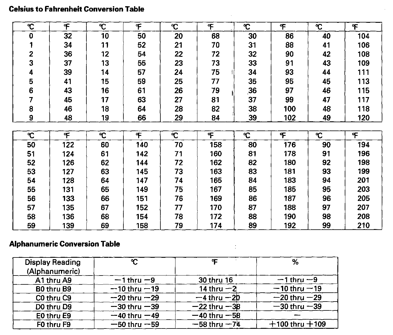 - The sensor values will be displayed in degrees Celsius or an alphanumeric code. Use the chart to convert the value to degrees Fahrenheit (°F).