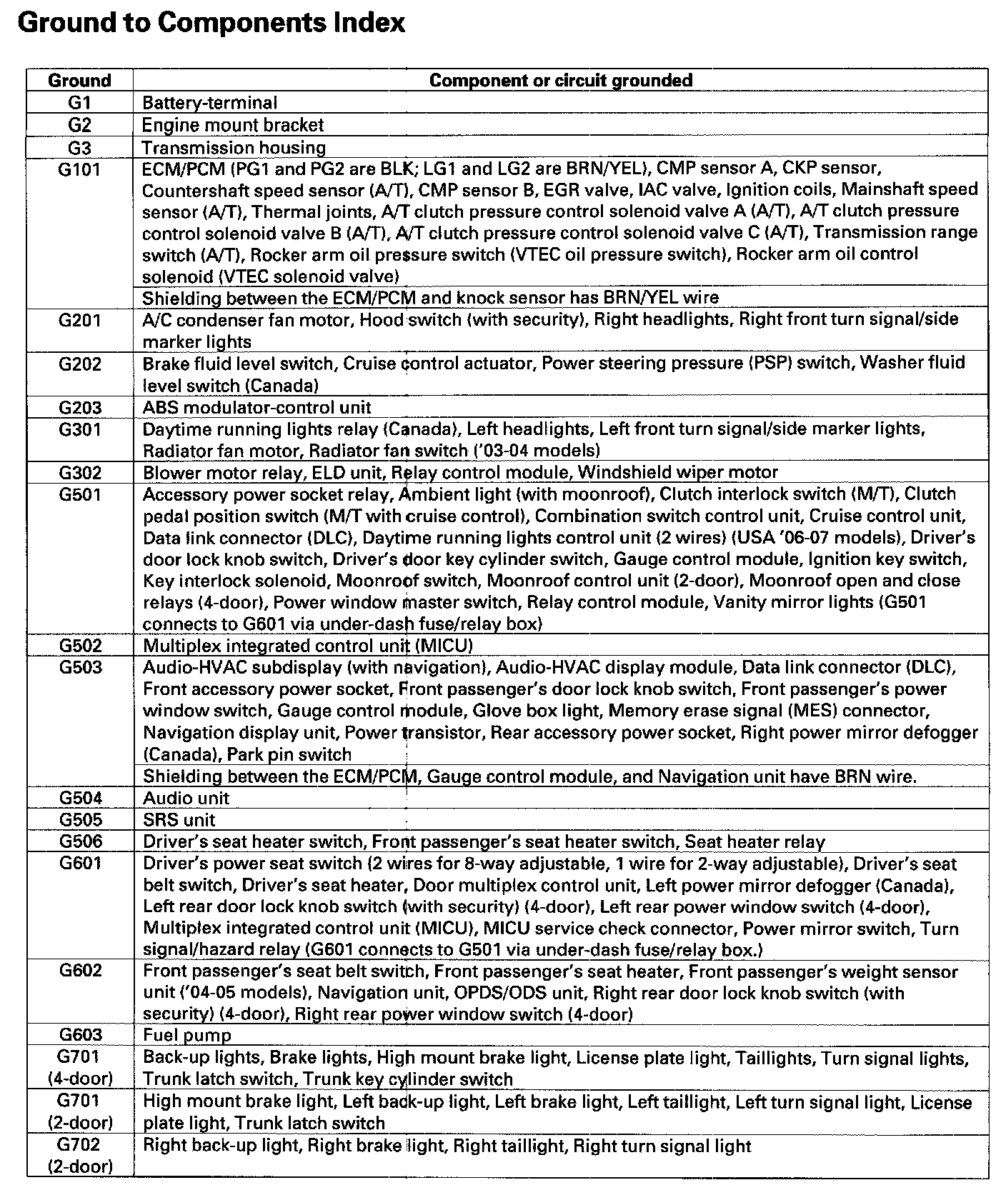 Ground to Components Index: