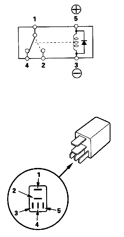 - There should be continuity between the No. 1 and No. 2 terminals when battery positive terminal is connected to the No. 5 terminal, and battery negative terminal is connected to the No. 3 terminal.