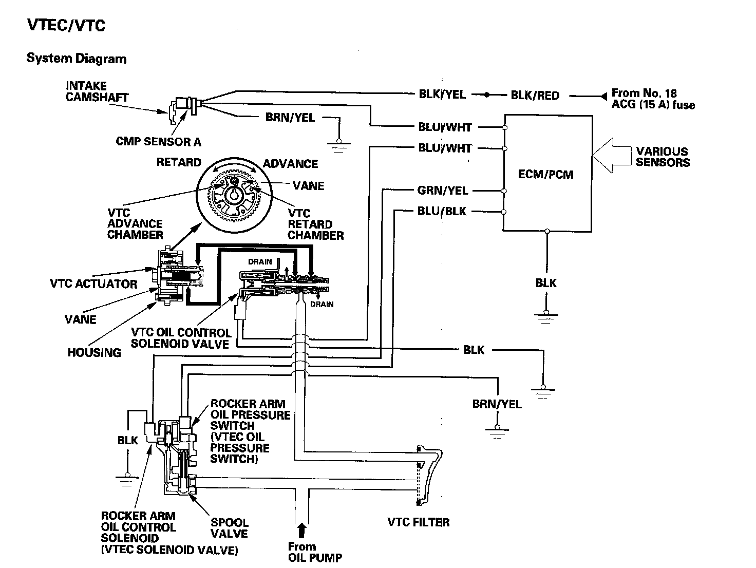- The VTC changes the phase of the intake camshaft via oil pressure. It changes the intake valve timing continuously.