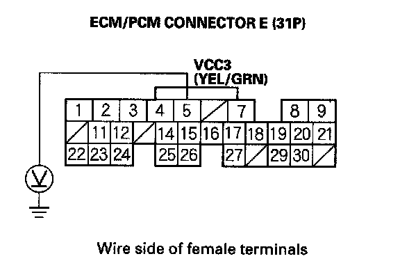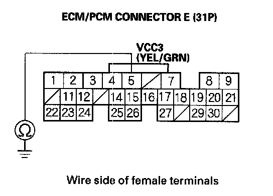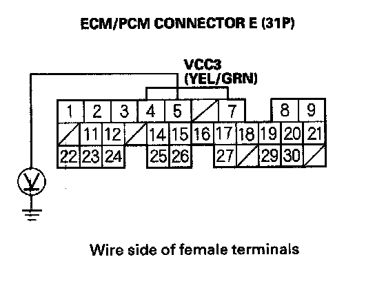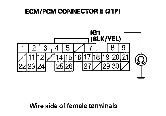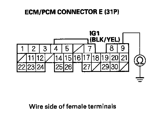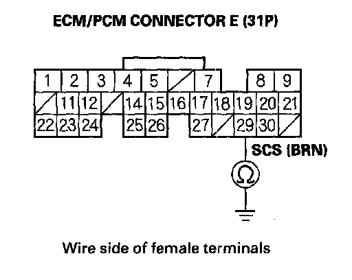 16. Check for continuity between ECM/PCM connector terminal E29 and body ground.