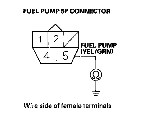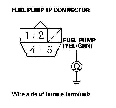 43. Check for continuity between fuel pump 5P connector terminal No. 5 and body ground.