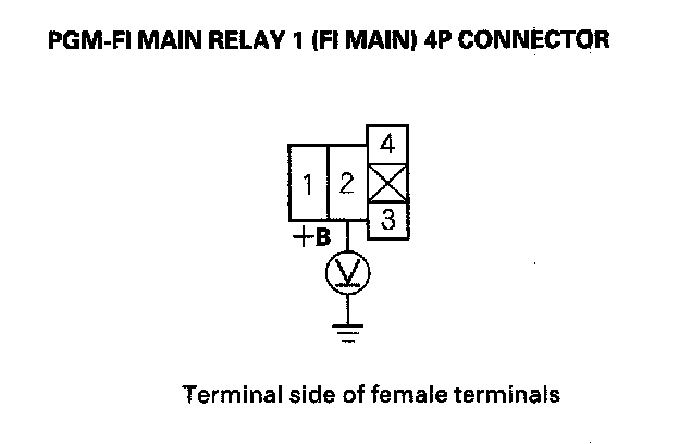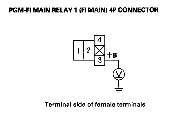51. Measure voltage between PGM-FI main relay 1 (FI MAIN) 4P connector terminal No. 3 and body ground.