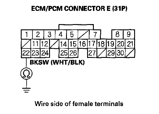 8. Check for continuity between ECM/PCM connector terminal E22 and body ground.
