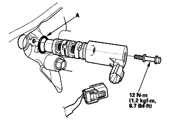 VTC Oil Control Solenoid Valve Removal/Test/Installation1. Disconnect the VTC oil control solenoid valve connector (A).