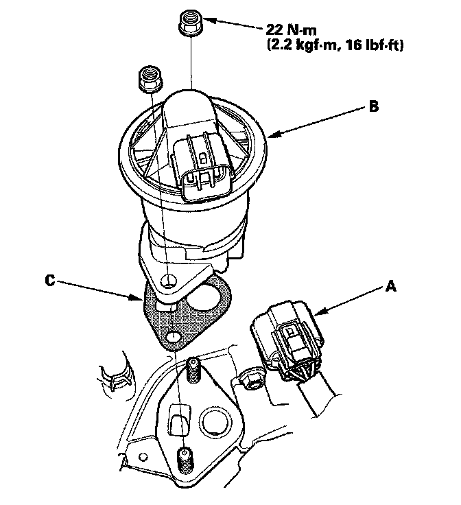 Install the parts in the reverse order of removal with a new gasket (C).