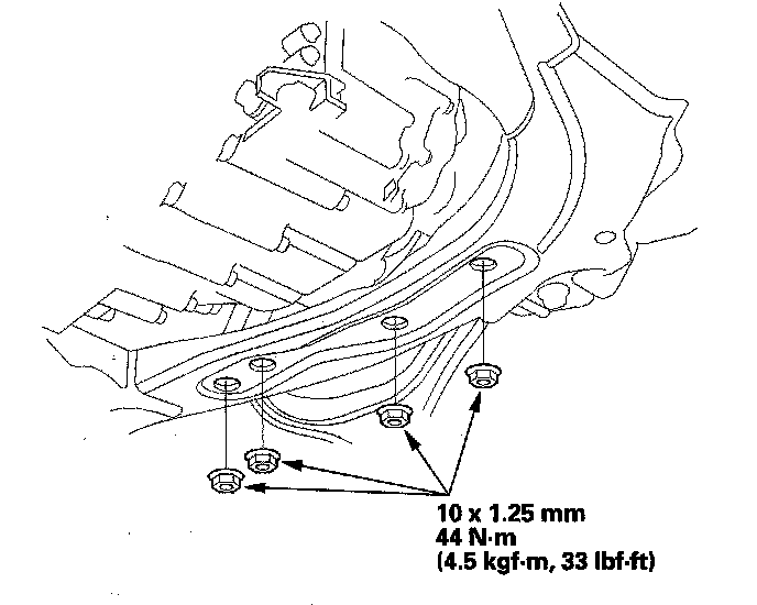 26. Install the transmission lower mount nuts.