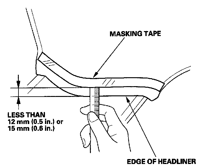 To prevent the side curtain airbag from accidentally deploying and damaged the pillar trim, the overlap between the headliner and pillar trim must be less then 15 mm (0.6 in.). To check the overlap, do this: