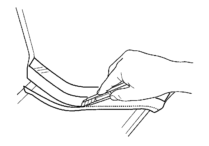 4. Carefully trim the headliner with a utility knife, reducing the overlap to less than 12 mm (05. in.) (2-door model) or 15 mm (0.6. in.) (4-door model).