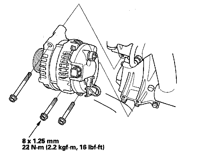 1. Install the three bolts securing the alternator.