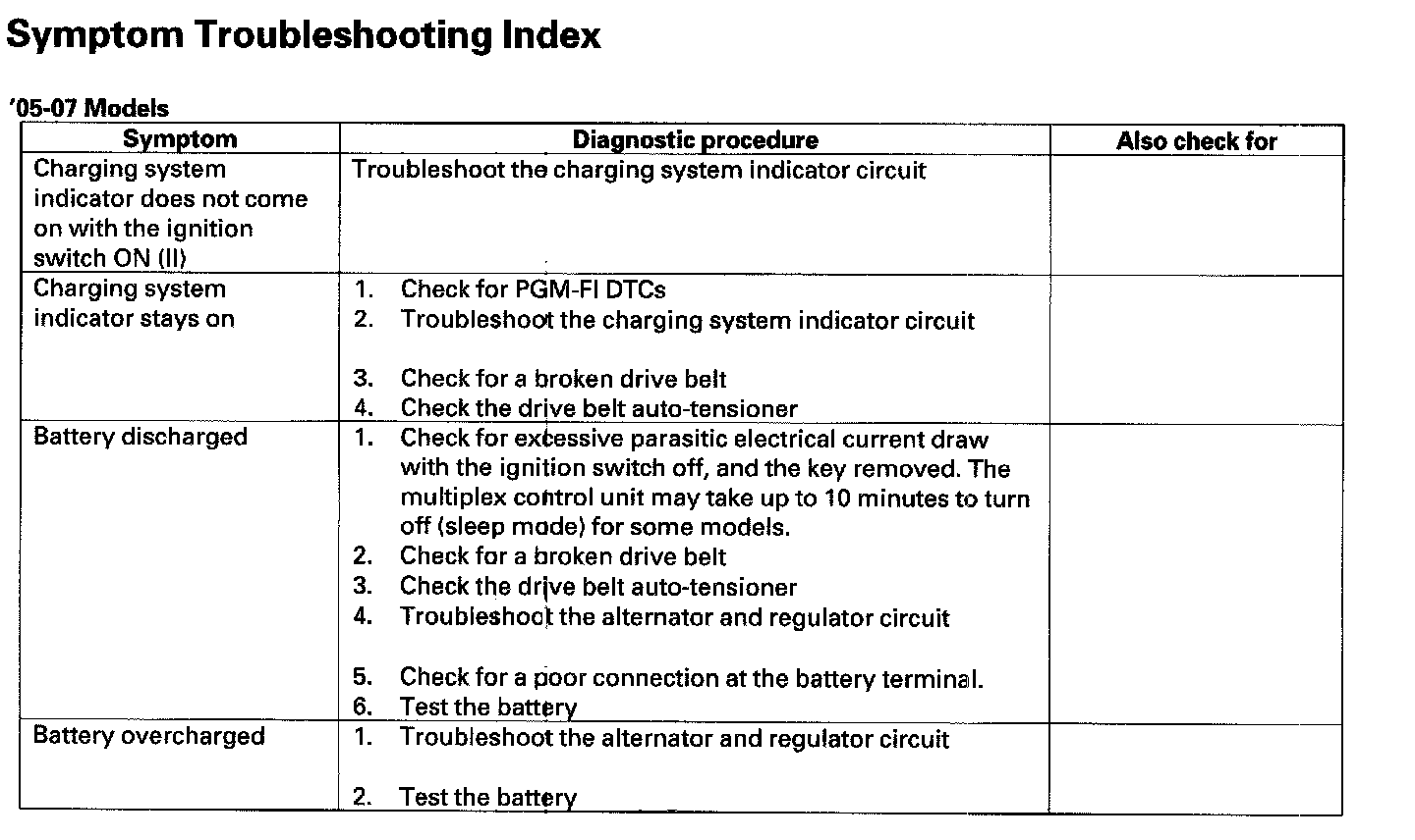 Symptom Troubleshooting Index: