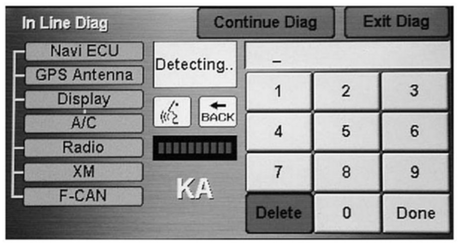 ^ Press and hold the Menu, Map/Guide, and Cancel buttons at the same time until the Select diagnosis screen comes up. Then release the buttons.