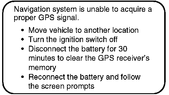 ^ The GPS antenna receives location information from orbiting satellites. Anything that blocks or interferes with the signal will affect accuracy. The GPS signal can be blocked or interfered with (vehicle position shown incorrectly on the map) by: