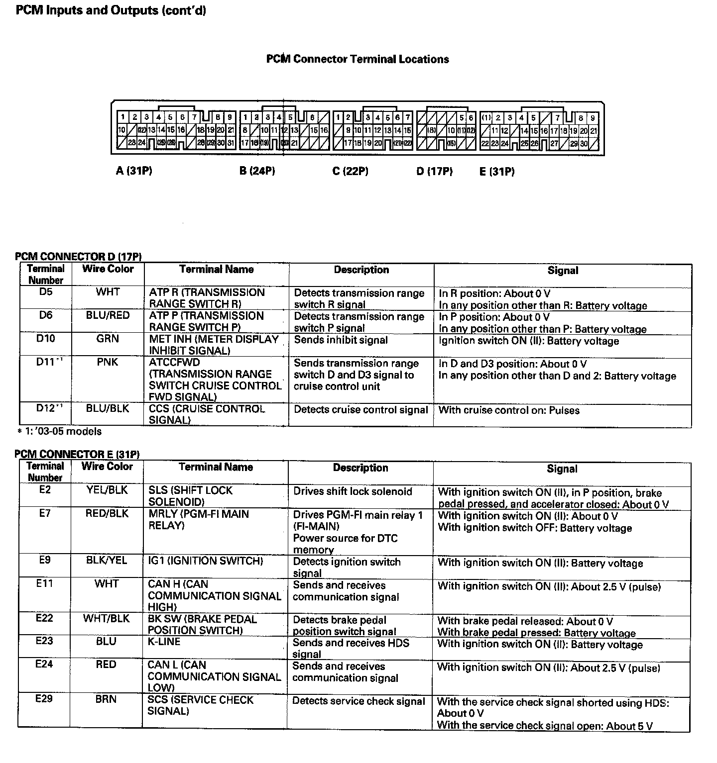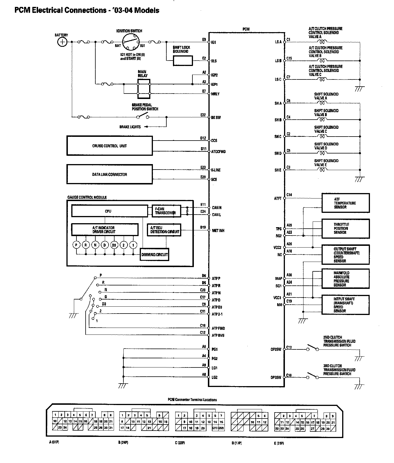 Electronic Control System PCM Electrical Connections - 2003-2004 Models: