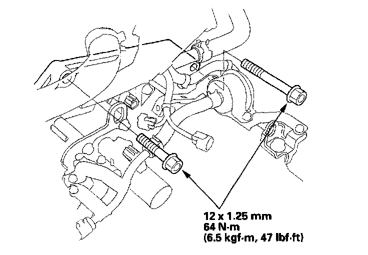 7. Install the upper transmission housing mounting bolts.