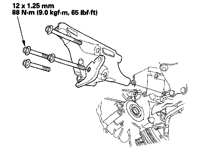 5. Attach the transmission to the engine, then install the rear transmission housing mounting bolts.