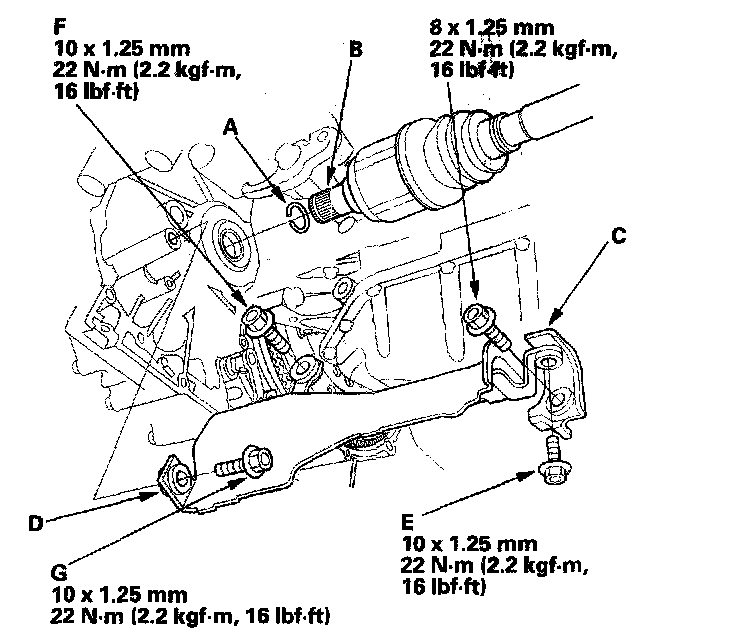 ^ Clean the areas where the driveshafts contact the transmission (differential) with solvent or carburetor cleaner, and dry with compressed air.