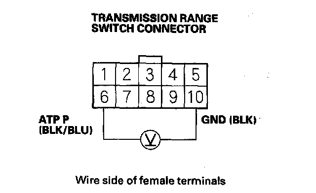 23. Measure the voltage between transmission range switch connector terminals No. 6 and No. 10.