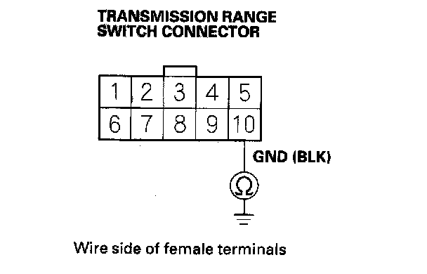 28. Check for continuity between transmission range switch connector terminal No. 10 and body ground.