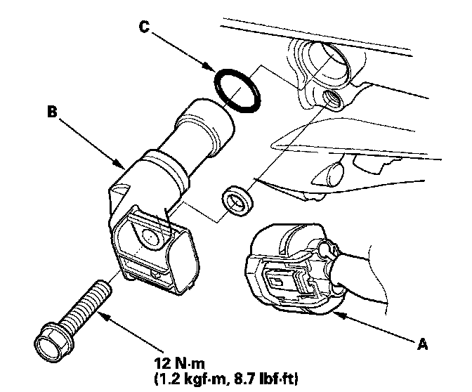 4. Install the parts in the reverse order of removal with a new O-ring (C).