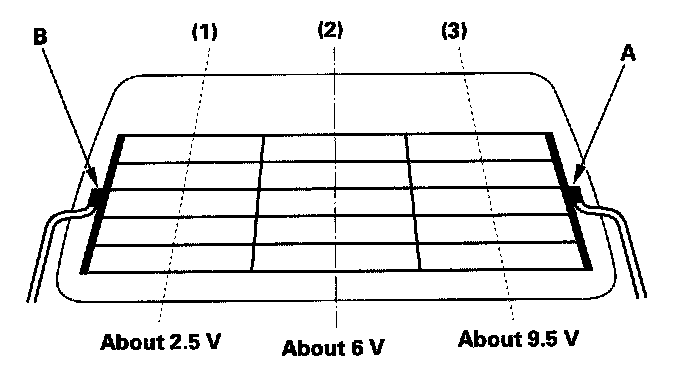 1. Check for voltage between the positive terminal (A) and body ground with the ignition switch and defogger switch ON.