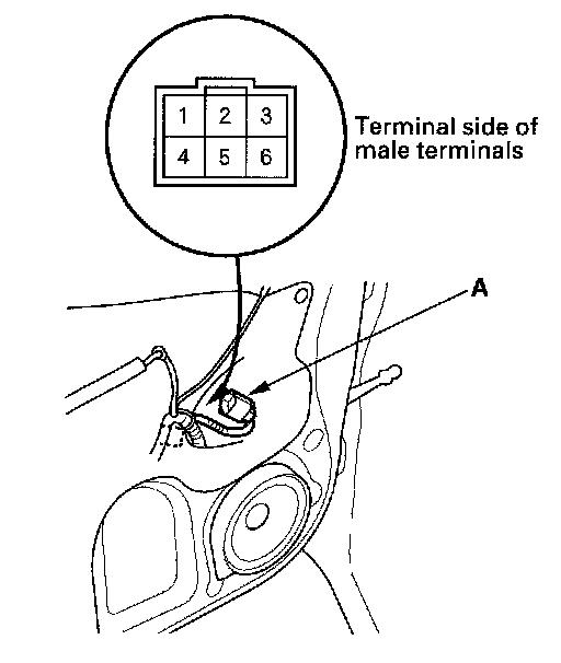 2. Disconnect the 6P connector (A) from the window motor.